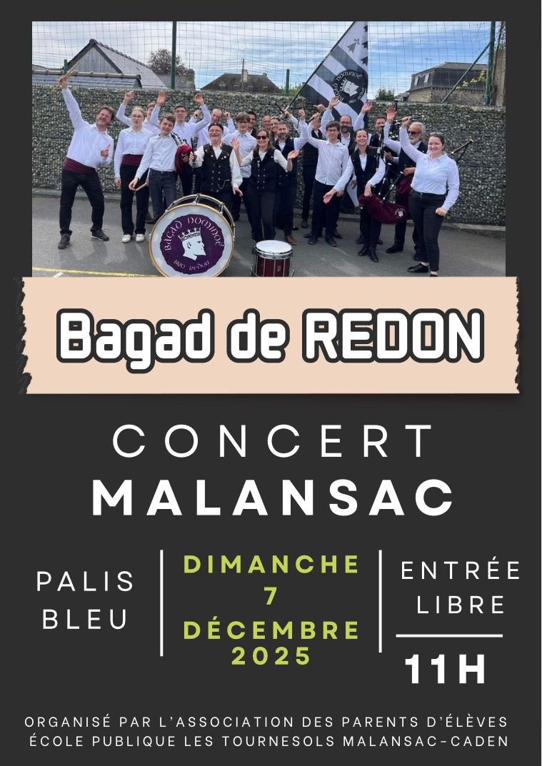Ne manquez pas un moment culturel et musical unique à Malansac ! Le Bagad Nominoë Bro Redon vient faire vibrer le Palis Bleu avec ses mélodies bretonnes puissantes et entraînantes.